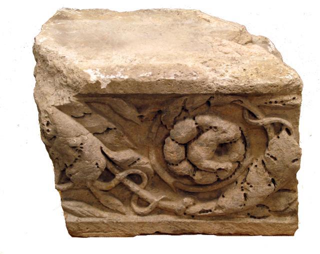 Dit fragment werd aangetroffen in de uiterwaarden van de Maas. Mogelijk maakte het oorspronkelijk deel uit van de tempel van Kessel. De resten daarvan werden in de vierde eeuw gesloopt en zijn wellicht door de Romeinen gebruikt bij de versterking van hun fort aan de Maas bij Kessel.