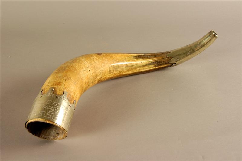 - BeschrijvingBuffelhoorn met zilveren beslag aan beide uiteinden. Inscriptie op grote manchet: "Rootte-Hoorn van Hintham"