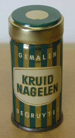 - BeschrijvingMetalen strooibus met draaiafsluiting zuivere gemalen kruidnagelen, 25 gram. Op het deksel staat een witte stip.