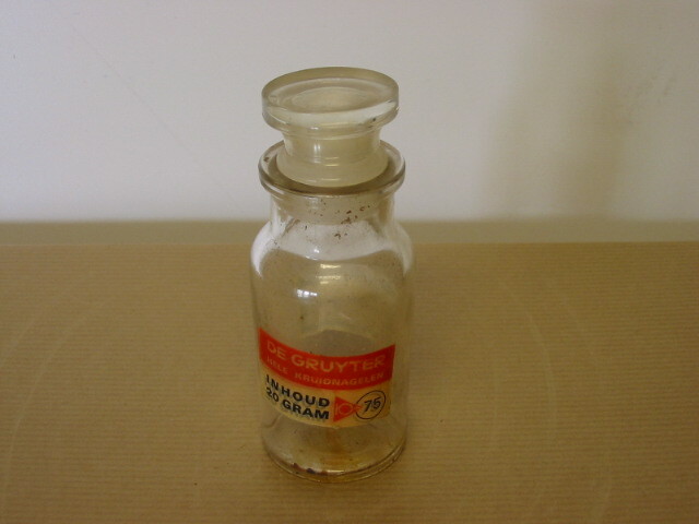 Doorzichtige glazen pot met kunststof klemdop met De Gruyter kruidnagelen. De pot is leeg.