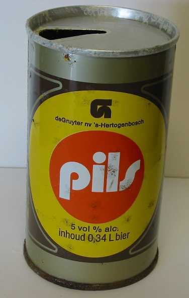 - BeschrijvingLeeg blikje pils. Het blikje is grijs met geel en oranje. Op het blik staat het De Gruyter logo van na 1972. De voor en achterkant zijn hetzelfde.