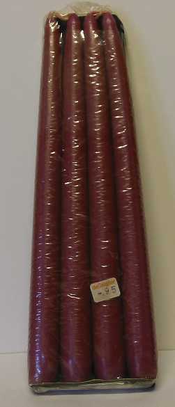 - Beschrijving4 paarse kaarsen, verpakt in karton en plastic. De kaarsen lopen iets in een punt af. Op de voorkant zit een sticker geplakt met tekst de prijs. Het karton is zwart. En zit achter met plakband vastgeplakt.