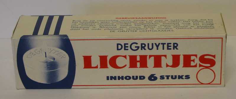 - BeschrijvingWit doosje met inhoud. er zitten 5 theelichtjes in de doos. Op de boven- en onderkant straat een afbeelding van een brandend theelichtje. Op de zijkanten lopen 3 verticale blauwe strepen.