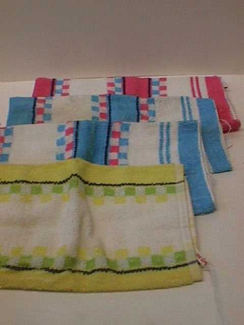 - BeschrijvingKeukenhanddoek in de kleuren blauw, roze, wit en zwart. De handdoek bestaat uit verschillende vlakken en strepen. Aan een hoek zit een lusje met in het rood tekst erop.