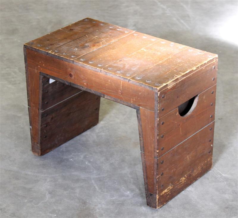 - BeschrijvingKruk met gesloten zijkanten met daarin halvemaanvormige handvatten. Dit meubel is afkomstig uit het atelier van de edelsmid Jan Noyons uit Utrecht. In zijn atelier werden van 1964 tot 1988 tentoonstellingen gehouden.