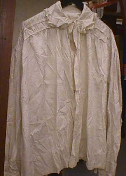 - BeschrijvingEen damesblouse van witte katoen met een wit katoenen binnenlijfje. Kraag en manchetten zijn afgezet met ruches en kantjes.