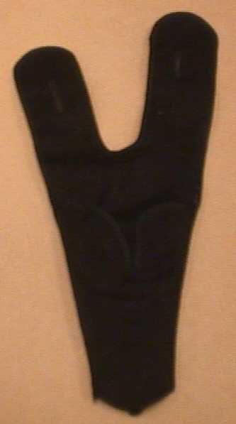 Een zwarte degenhouder. Dit kostuum werd gedragen door jonkheer M.C. van Rijckevorsel tijdens de maskerade van het Leidse studenten-corps in 1910. Deze maskerade had als thema 'De blyde incomste van syne hoogheyt Frederick Hendrick, vergese schapt van haare majesteyt Henriëtte Maria, coninginne van Groot-Brittanien'. Mr. Johannes Polyander genaamd Van den Kerckhoven, was heer van Kerckhoven, Heenvliet en Sassenheim, Luitenant-Houtvester, Groot-Jagermeester en Groot-Valckenier van wege de Ed. Groot Mog. Heeren Staten van Holland en West-Friesland, Superintendant van het Hof en de Affaires van H.K.H. Maria, Prinses van Engeland, Prinses Douarière van Oranien.