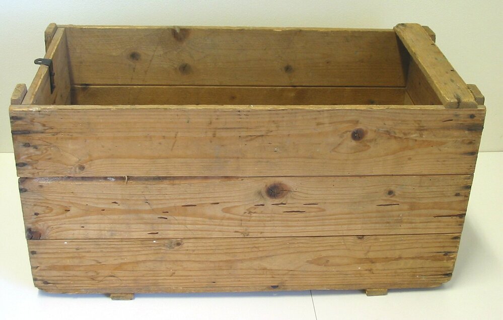 Houten kist bestaande uit 21 plankjes, werd gebruikt om boodschappen te bezorgen.