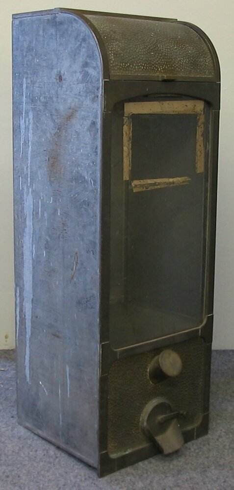 - BeschrijvingMetalen koffiesilo uit een winkel van De Gruyter. Op de voorzijde zit een ruitje van glas, aan de bovenkant zitten verfresten. Achter het glas zouden normaal koffiebonen moeten zitten. Aan de voorzijde zit een hendeltje dat je omhoog moet draaien om de koffiebonen eruit te halen.
