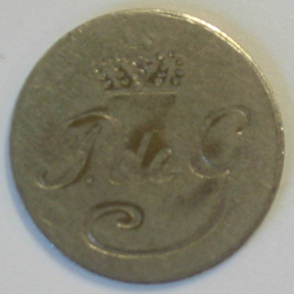- BeschrijvingRonde metalen munt. Op de voorzijde P de G met een kroontje erou een munt voor koffieautomaat zijn (volgens een bezoeker van de kijkdag 01-02-2000).