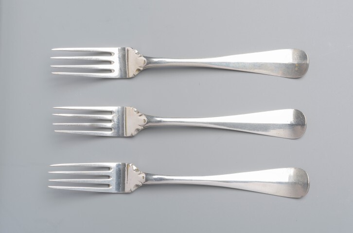 - BeschrijvingEen klein vorkje van zilver, versierd met een Haags lofje.