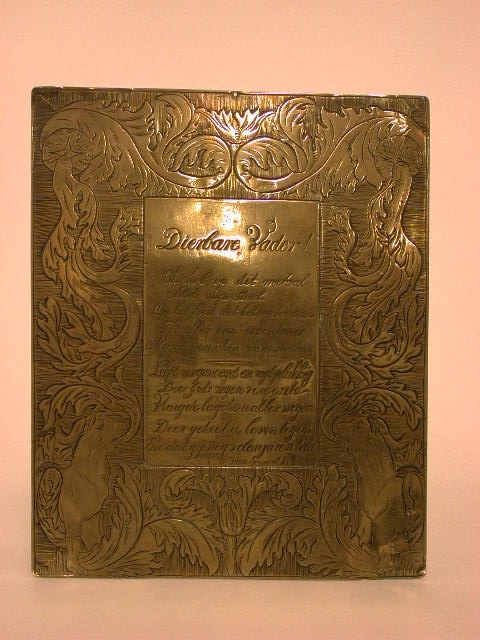 - TitelOp messing gegraveerde verjaardagswens van de zilversmid Christianus van Gemert aan zijn vader, 31 december 1845