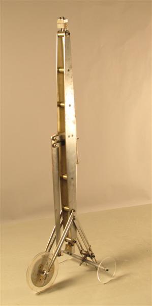 - BeschrijvingDoor het 'dag-en nachtprincipe' schrijft het automobieltje ('zelfbeweger') in een periode van drie maanden een cirkel op de vloer.