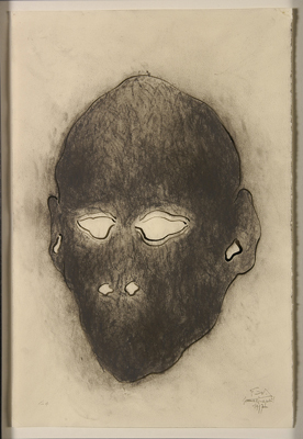 - BeschrijvingEen tekening uit de serie van zestien ingelijste pentekeningen van hoofden en verwante vormen die samen één werk vormen.