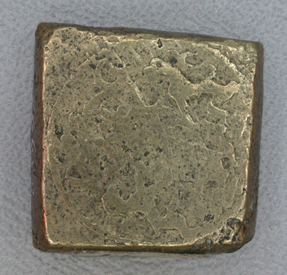 - BeschrijvingVierkant gewichtje in broodjesvorm met op de voorzijde rond een vierspakig rad de 4 britse koningswapens (Kloksgewijs: Engeland/Wales-Schotland-Frankrijk-Ierland), gescheiden door 4 scepters en omgeven door parelrand. Op de achterzijde een niet te identificeren gevierendeeld (?) wapen (?) (vgl. 9667 b5)