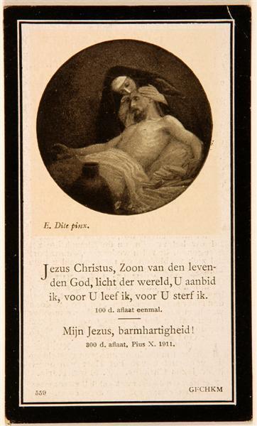 - BeschrijvingDoodsprent van Alexander Ferdinant Meijring (1840-1918). Voorstelling: Maria ondersteunt het hoofd van de dode Christus. Christus ligt op bed.