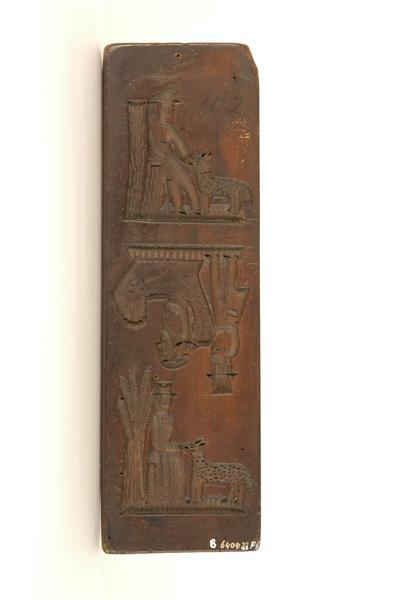 - Beschrijvingvoorkant: 1. herder op een stoel met een schaap voor zich 2. sledevaart 3. herderin op een stoel met een schaap voor zich bij een boom achterkant: 1. hond met mand in de bek (dwars) 2. hond (dwars) 3. haan