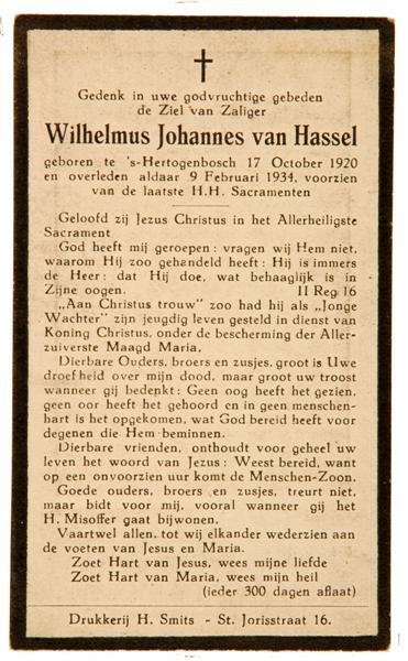 - TitelDoodsprent Wilhelmus Johannes van Hassel