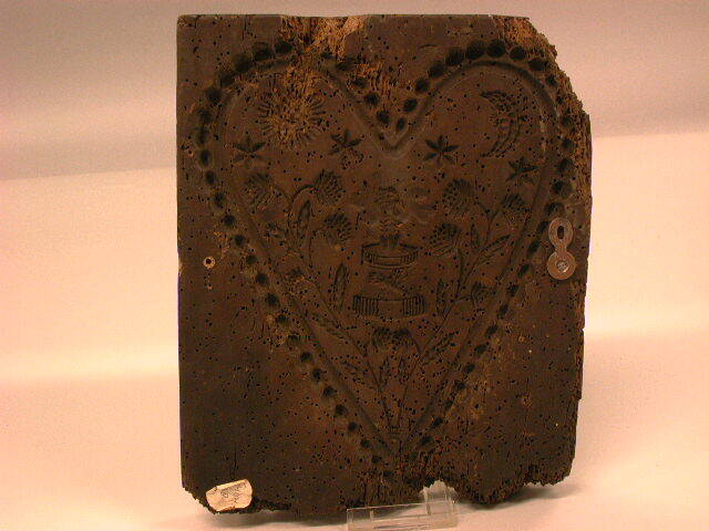 - Beschrijvingvoorkant: koe achterkant: hart versierd met zon, maan, sterren en bloemen