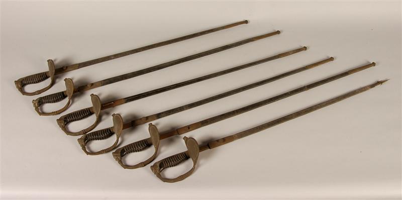 - BeschrijvingModel 1875, 'degen nr. 1'. Geelkoperen gevest, houten (?) greep, blank metalen tweezijdige kling. Onbewerkte stootplaat. Zwarte leren schede, met boven- en onderband van geel koper.