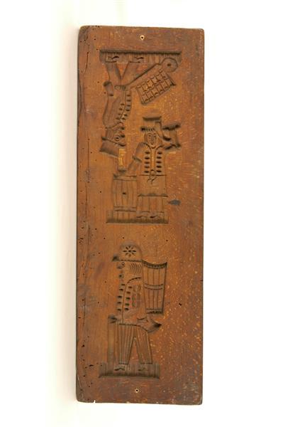 - BeschrijvingVoorkant: 1. ruiter 2. hanenruiter 3. herderin en herder met schapen achterkant: 1. boer met kruiwagen (op zijn kop) 2. kuiper 3. marskramer