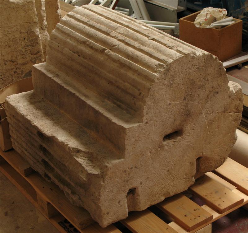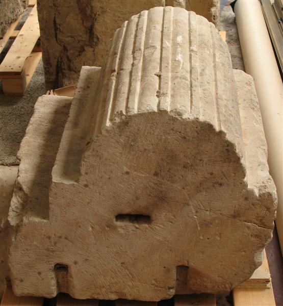 - BeschrijvingDit fragment werd aangetroffen in de uiterwaarden van de Maas. Mogelijk maakte het oorspronkelijk deel uit van de tempel van Kessel. De resten daarvan werden in de vierde eeuw gesloopt en zijn wellicht door de Romeinen gebruikt bij de versterking van hun fort aan de Maas bij Kessel.