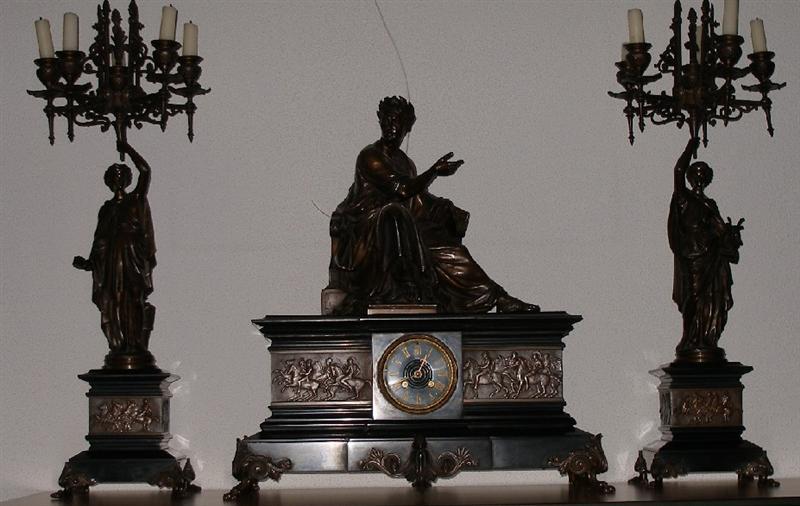 - TitelKlokstel bestaande uit een pendule en twee kaarshouders