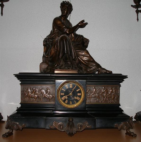Pendule van een klokstel bestaande uit een pendule en twee kaarshouders