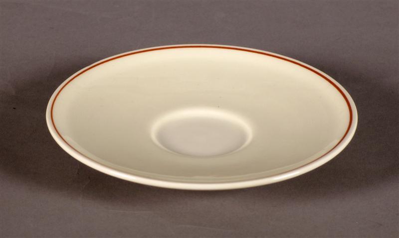 Aan de buitenrand is een roodbruine sierstreep aangebracht.