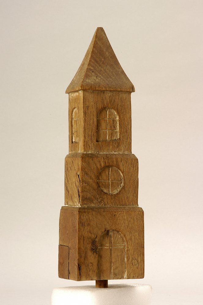 - TitelVaandelstokbekroning in vorm kerktoren met drie geledingen en puntdak