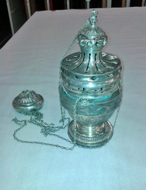 - BeschrijvingWierookvat met ronde voet met gestyleerde palmettenrand. Op de rand een band met langgerekte ruiten.