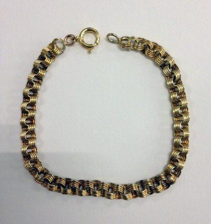 - BeschrijvingArmband met aan een zijde een sluiting en aan de andere zijde een slotoog.