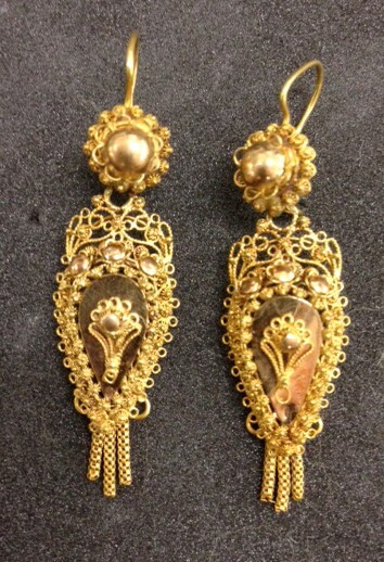 Set oorhangers versierd met bloem- en siermotieven, deels in ajour uitgevoerd
