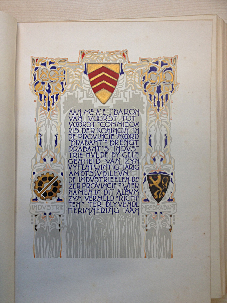 Hulde-album van Brabantse Industriëlen ter gelegenheid van het 25-jarig ambtsjubileum van Mr. A.E.J. baron van Voorst tot Voorst, commissaris van de koningin in 1919.