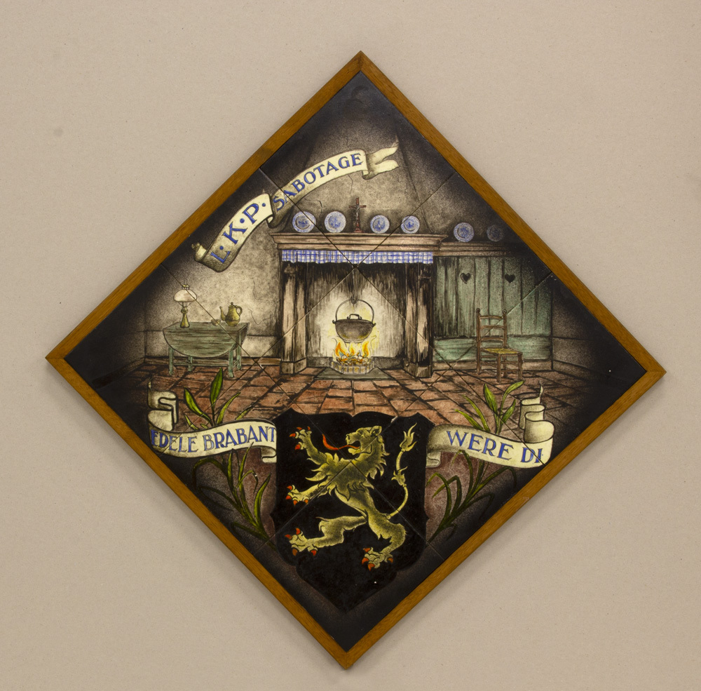 Negen ingelijste tegels vormen samen een voorstelling van een Noord-Brabantse ‘herd’. Op een banderol is ‘L.K.P. SABOTAGE’ te lezen en op een tweede banderol lezen we ‘EDELE BRABANT WERE DI’, waarbij — te midden van deze spreuk — het wapen van het Brabant te zien is. In de achterzijde van het tableau is een opening te vinden waardoor men op de achterkant van de tegels kan kijken. Daar staat geschreven: ‘Aangeboden aan Sjef ter gelegenheid van de eerste reünie op 27 april 1946 door zijn oud K.P.ers’. Sjef de Groot was commandant van L.K.P. Commando Brabant.