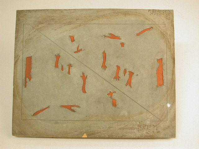 - BeschrijvingZinken plaat met uitsnijdingen voor het inkleuren van processievaantjes: bruin Behorend bij drukblokken 07445-07448 Vastgeniet op houten plankjes Zie inv.nr. 07445-07448 4 zinken platen: 07449 t/m 07452.