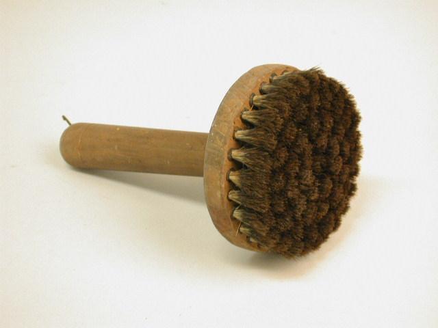 - BeschrijvingRonde steel aan houten schijf met kort borstelhaar (gebruikt voor zwarte inkt). (Behorend bij drukkersblokken en sjablonen van processievaantjes, inv.nrs. 07445-07452)