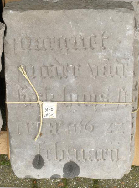 - BeschrijvingGrafzerk van Margriet, moeder van den Sieckhuys (overleden 22 februari 1556). Zij was wellicht directrice of hoofd der nonnen van het ziekenhuis? Op de steen een opschrift.