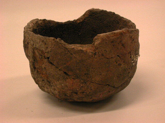 Nr. 22. Vaalbruin, ingesnoerd cylindrisch bekertje met halfbolvormige bodem.