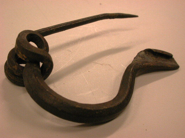 Draadfibula met zeshoekige beugeldoorsnede. Spiraaldraad bandvormig met 4 windingen. Vgl 08497 en 08606