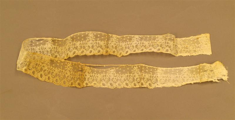 - BeschrijvingFragment Mechelse(?) kant. Handgeklost, bloemmotief met ijsgrond. Een uiteinde dubbel gevouwen. Op de achterzijde van het onderliggende kaartje is geschreven: "Gekloste Brusselsch kant Handwerk. 1891 Nieuw gekocht".