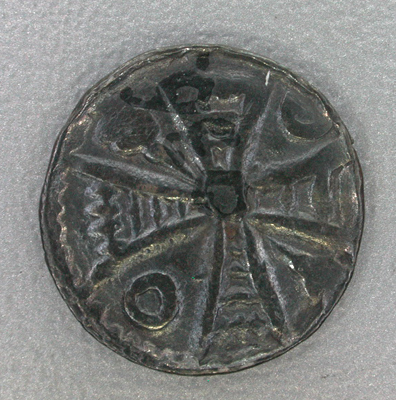 - BeschrijvingVz:Een brug, geflankeerd door twee vierbladige fleurons en tweemaal twee stippen. Tussen de uiteinden van de brug een boogje. Kz:Brabants kruis in de kwartieren twee ringen en twee boompjes. Om het geheel een parelrand.