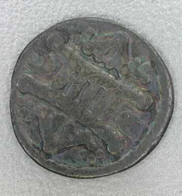 - BeschrijvingVz:Een brug, geflankeerd door twee vierbladige fleurons en twee paren van vier stippen. Tussen de uiteinden van de brug een boogje. Om het geheel een parelrand. Kz:Brabants kruis in de kwartieren twee boompjes, een ring met een stip en een boogje. Om het geheel een parelrand.