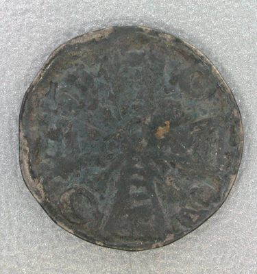 - BeschrijvingVz:Een brug, geflankeerd door twee vierbladige fleurons. Ter weerszijde van de fleurons een stip. Tussen de uiteinden van de brug vier stippen. Kz:Brabants kruis in de kwartieren twee gestileerde bloemen en twee ringen.