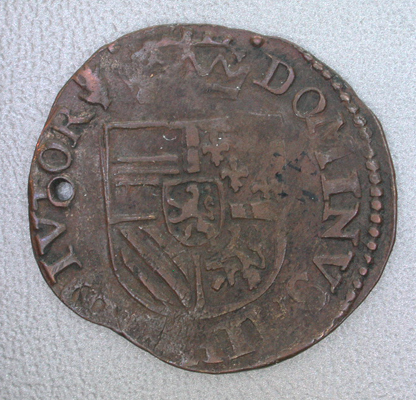 - BeschrijvingVz:Borstbeeld van Philips II naar rechts. Onder het borstbeeld het jaartal 8 handje 7. Daaromheen het omschrift en een parelrand. Kz: Gekroond wapen van Oostenrijk-Bourgondiƫ. Daaromheen het omschrift en een parelrand.