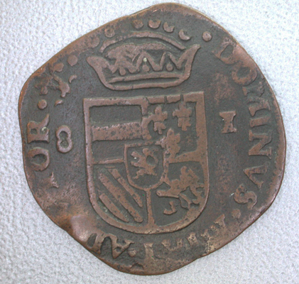 - BeschrijvingVz: Het naar rechts gewende ongekroonde borstbeeld van Philips II, aan de onderzijde reikend tot de onderzijde van de munt. Tussen een getrokken rand en een parelrand het omschrift. Kz: Het gekroonde Oostenrijks-Bourgondische wapen geflankeerd door de cijfers 8 en I. Daaromheen het omschrift en een parelrand.
