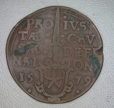 - BeschrijvingVz: Een vijfpuntige ster daaronder het opschrift. In de afsnede de waarde-aanduiding II. Om het geheel een getrokken rand en een parelrand. Kz: Het stadswapen van Maastricht in een rolwerkomlijsting boven het wapen een zwaard. Ter weerszijden van het wapen het opschrift. Om het geheel een getrokken rand en een parelrand.