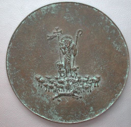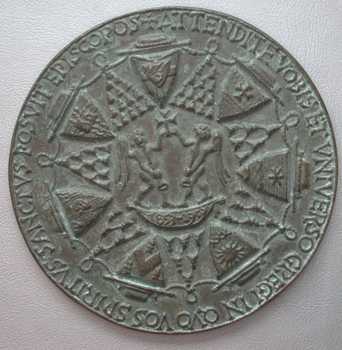 Voorzijde: De Goede Herder, temidden van zijn kudde. Keerzijde: In het midden twee bazuinblazende engelen die een kruis tussen hen in dragen. Eromheen de wapens van de biscommen. Onder de engelen een lint met 1853-1953. Omschrift: + ATTENDITE VOBIS EN VNIVERSO GREGI IN QVO VOS SPIRITVS SANCTVS POSVIT EPISCOPOS. Gegoten bij Koninklijke Begeer.