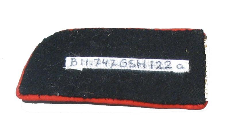 Kolonel: 3 gouden sterren op goudband. Kraag: rood laken. Voering: zwart laken.
