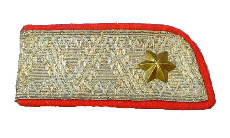 Majoor: 1 gouden ster op goudband. Kraag: rood laken. Voering: zwart laken.